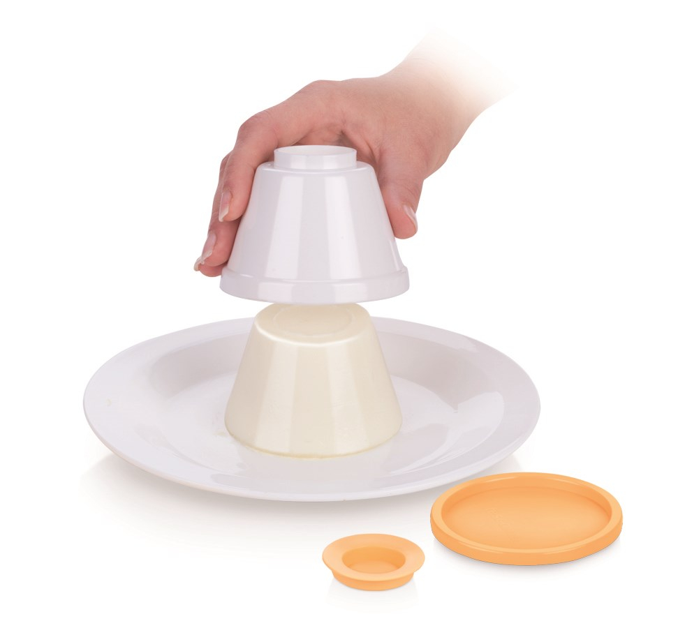 Fremragende form til at lave den klassiske Panna Cotta, chokolademousse eller citronfromage. Formen er udstyret med et låg i toppen, som gør det lettere at få indholdet til at "slippe" op komme perfekt ud af formen. Kan også bruges til desserter med is, budding, ost og lignende. Formen indeholder 150 ml. og måler Ø 8,5 cm i bunden og er 7 cm. høj. Tåler både fryser og opvaskemaskine.