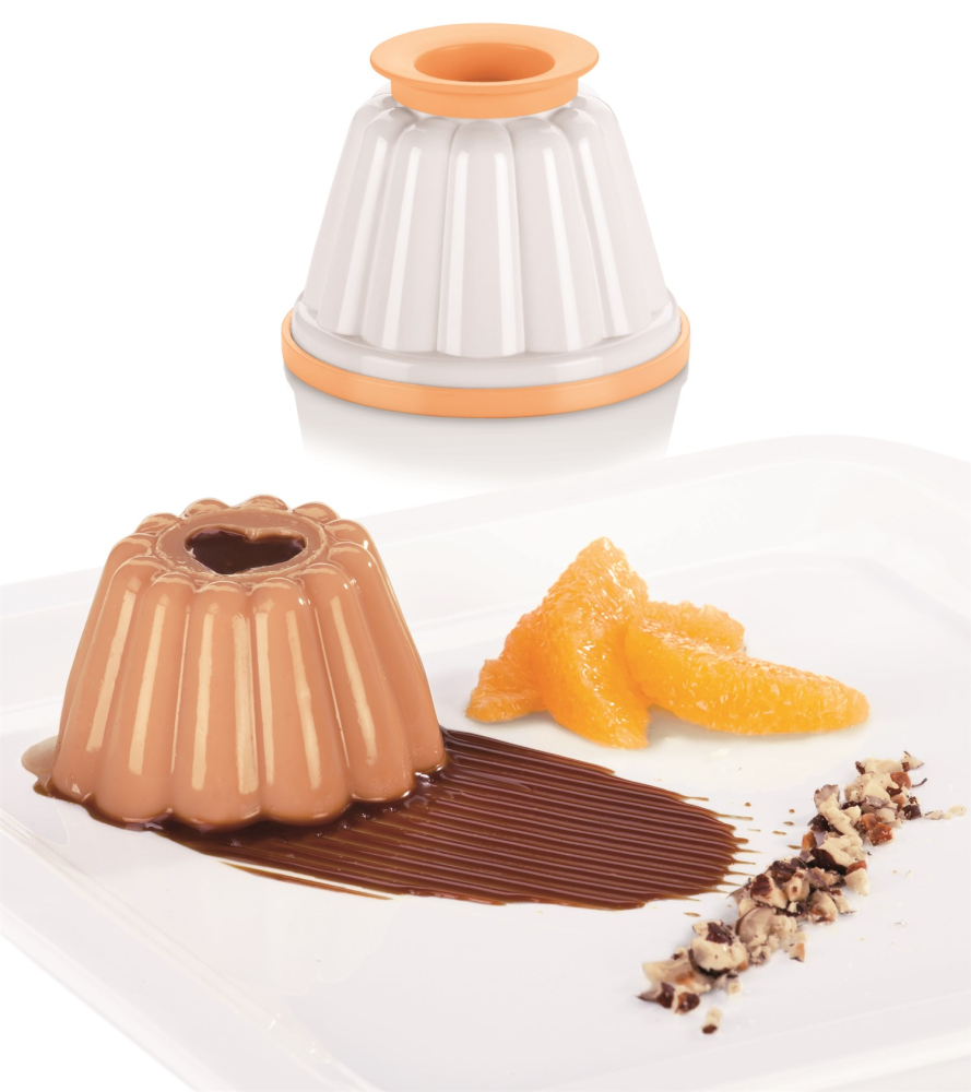 Fremragende form til at lave den klassiske chokolademousse eller citronfromage. Formen er udstyret med et låg i toppen, som gør det lettere at få indholdet til at "slippe" op komme perfekt ud af formen. Kan også bruges til desserter med is, budding, ost og lignende. Formen indeholder 150 ml. og måler Ø 8,5 cm i bunden og er 7 cm. høj. Tåler både fryser og opvaskemaskine.