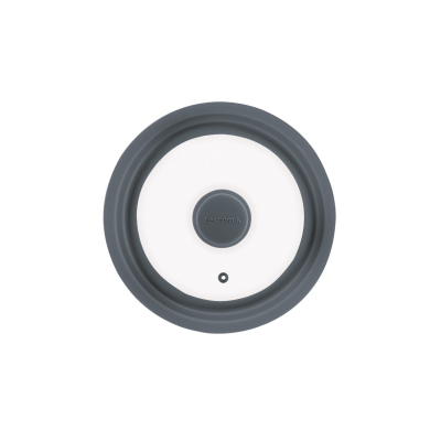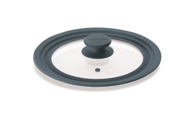 Universallåg som passer til alle gryder og pander med en diameter på 20-22-24 cm. Låget er fremstillet i hærdet glas og silikone - og intet andet. Det tåler derfor også at komme i ovnen på maks. 200 grader. Låget beskytter komfuret og ovn mod skænk og fedtstof, når der koges eller steges.
