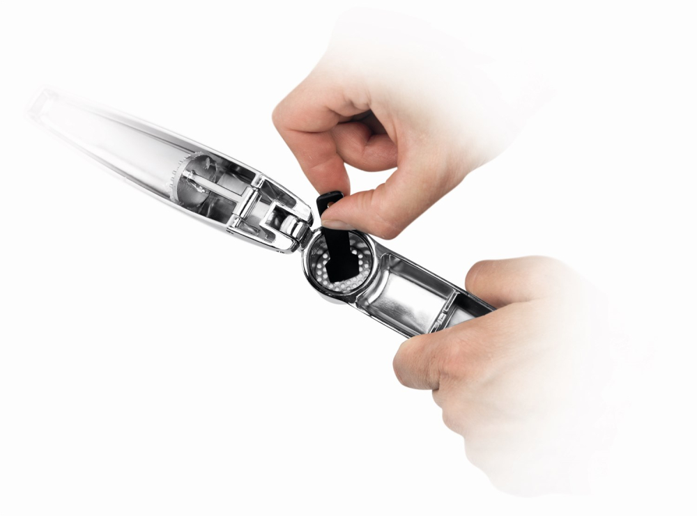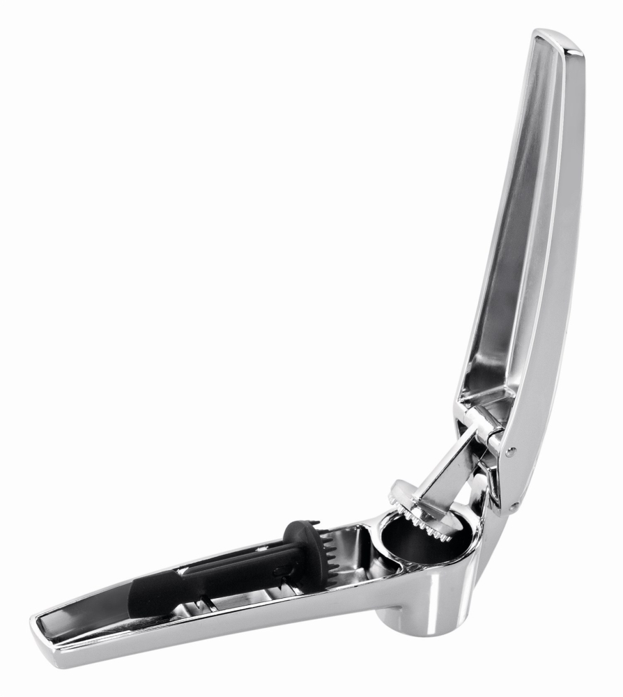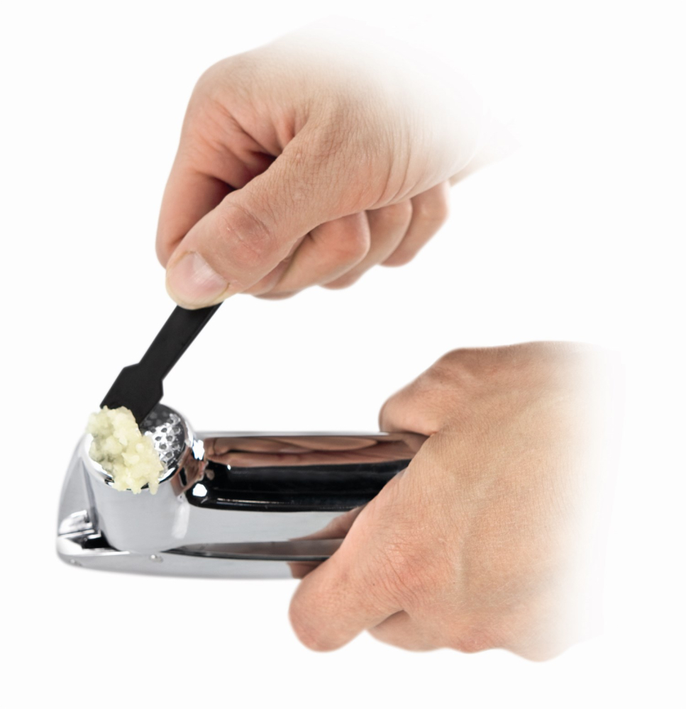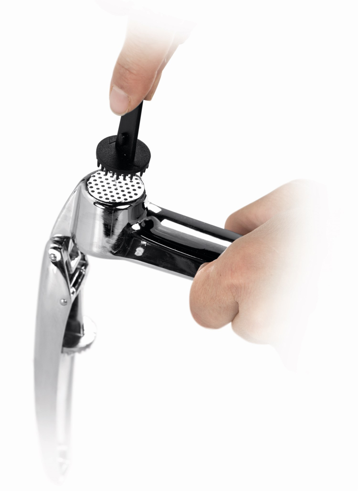 Denne hvidløgspresser i lækkert design fra Tescoma er i TOP kvalitet, og leveres med et rensesæt som gør at hvidløgspresseren er let at rengøre efter brug, så hullerne ikke stopper til.