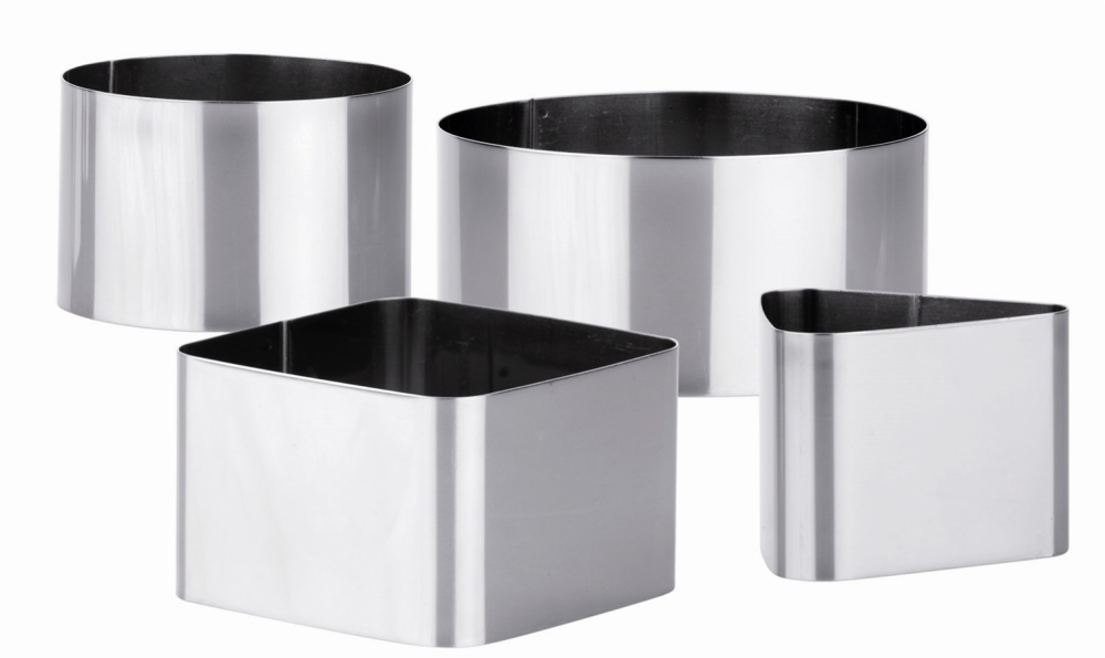 Sætte består af 4 forme: 1 rund Ø7,5 cm, 1 rund Ø10 cm, 1 firkantet 8x8 cm og 1 trekantet 6,5 cm