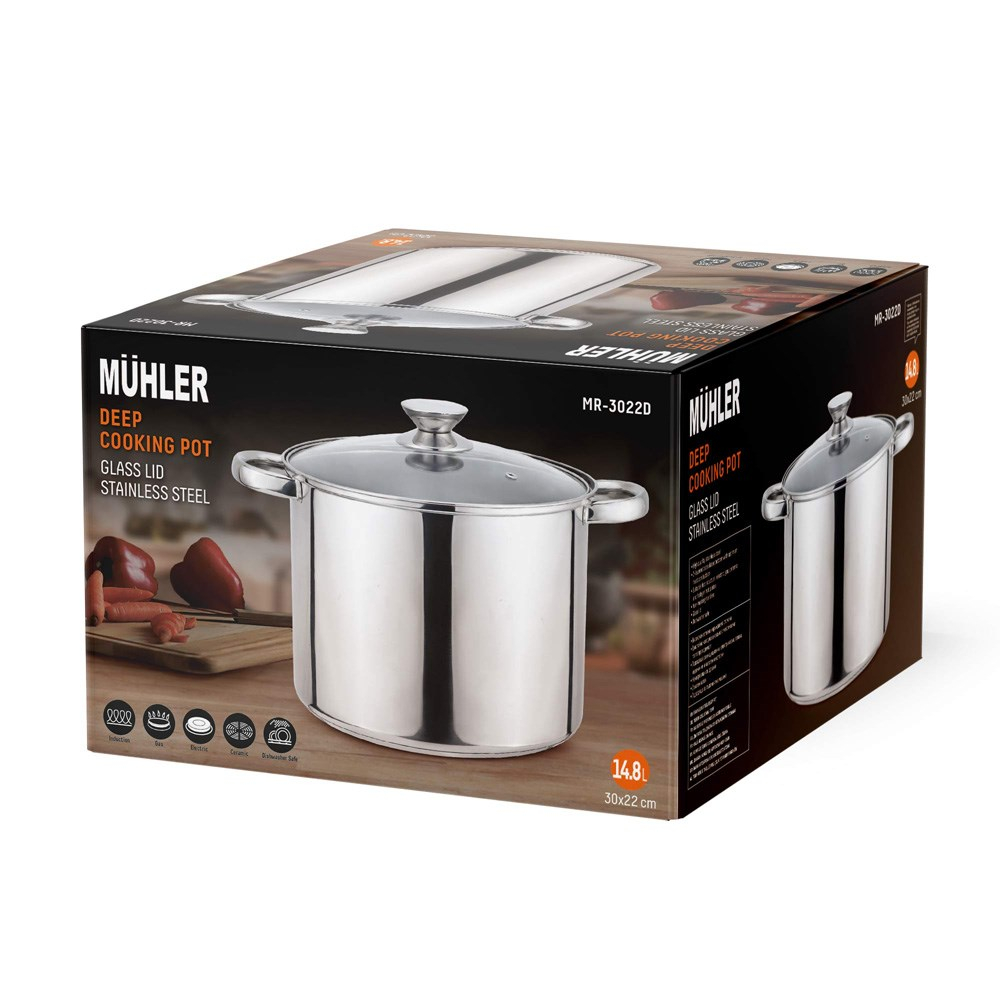 Stor suppegryde i rustfrit stål med glaslåg, 14,8 liter