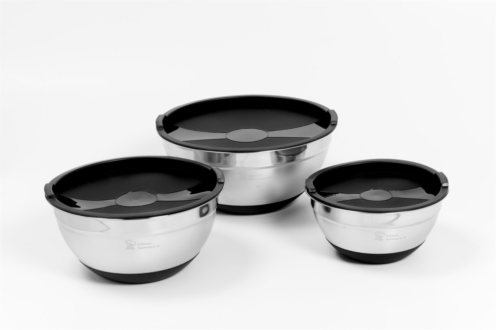 Alle skåle er med en skridsikker silikone bund, som gør at skålen står fast på bordet når du f.eks. skal piske indholdet med en håndmikser.