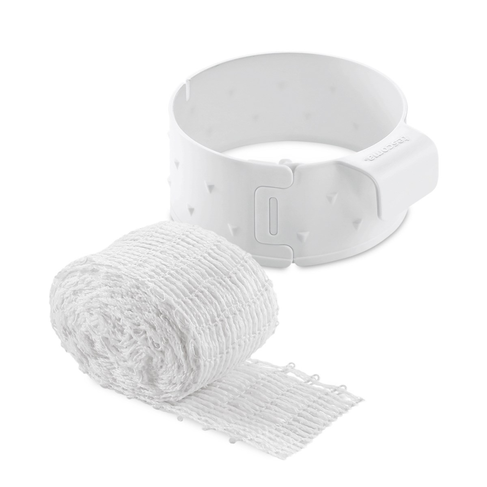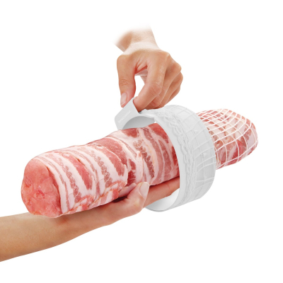 Kødnet med smart monteringskrave til brug ved produktion af dyrekølle, rullepølse, hamburgryg o.lign. hvor det er en fordel at holdet kødet stramt under kogning eller stegning. Monteringskraven hjælper dig ved montering af nettet. Du monterer nettet på kraven og efterfølgende trækker kraven udenom kødstykket i en bevægelse, for efterfølgende at klippe af og lukke nettet.