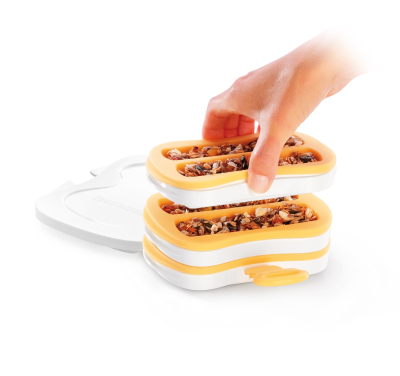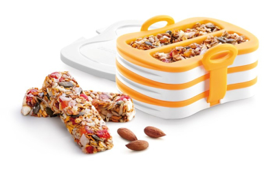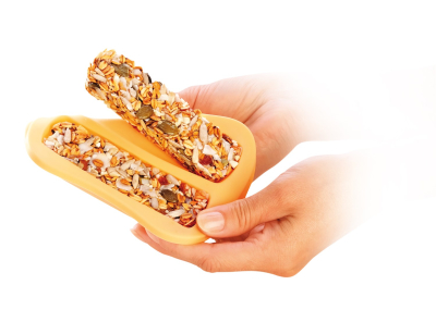 Lav din egen energibar, müslibar eller lækre rugbrøds snacks med denne smarte mini rugbrødsform, som kan pakkes i lag, når de skal opbevares i køleskabet og derved fylder mindst muligt. Du kan lave energibarer der enten skal bages let i ovnen eller være "raw" og blot blandes og lægges på køl.