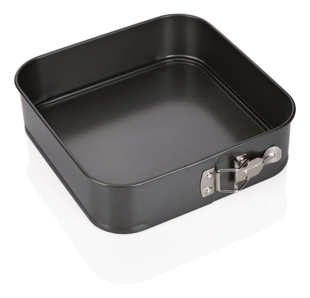 Firkantet springform med non-stick belægning. Formen måler 24 x 24 cm, og er 7 cm. høj. Bør ikke maskinopvaskes