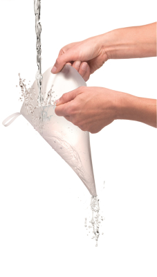(Ar.nr. 630487) eller dekorere direkte fra posen. Overfladen inde i posen og non-stick overfladen gør det lettere at dekorere. Den elastiske pose er let at fylde og indholdet kan opbruges uden nævneværdigt spild. Vask posen under rindende vand efter hvert brug. Posen tåler ikke maskinopvask.