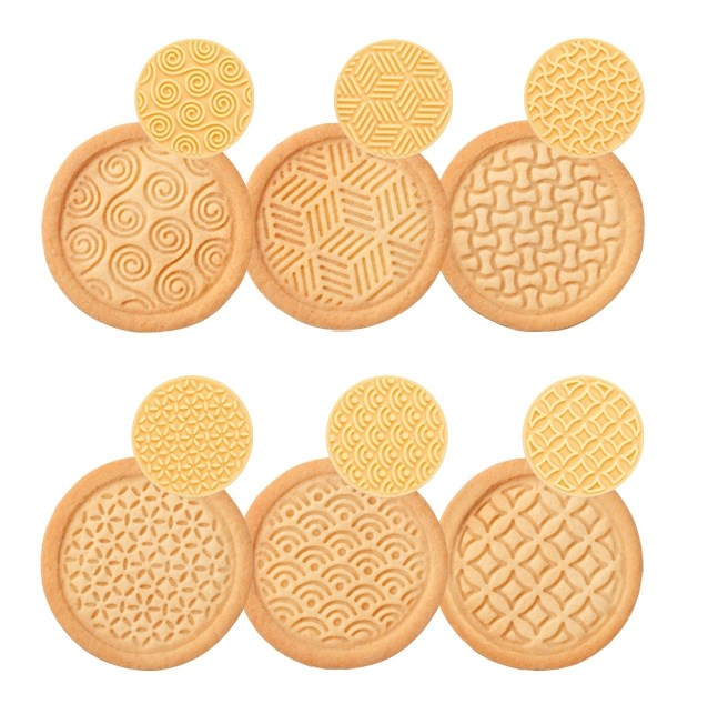 Der medfølger 6 kagestempler så du kan lave forskellige mønstre, samt en lille opskriftbog.