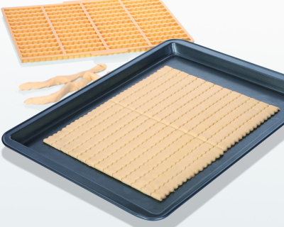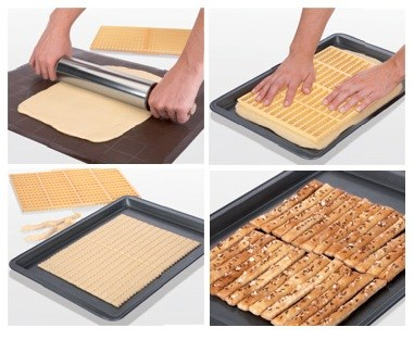 Lav dine egne lækre Grissini med den smarte Grissini form. Dejen rulles ud placeres på en bageplade og sæt formen med over dejen så dine Grissini bliver skåret ud. Smart, let og lækkert. Du kan nemt rulle en butterdej ud på bordet eller benytte den medfølgende opskrift på dej.