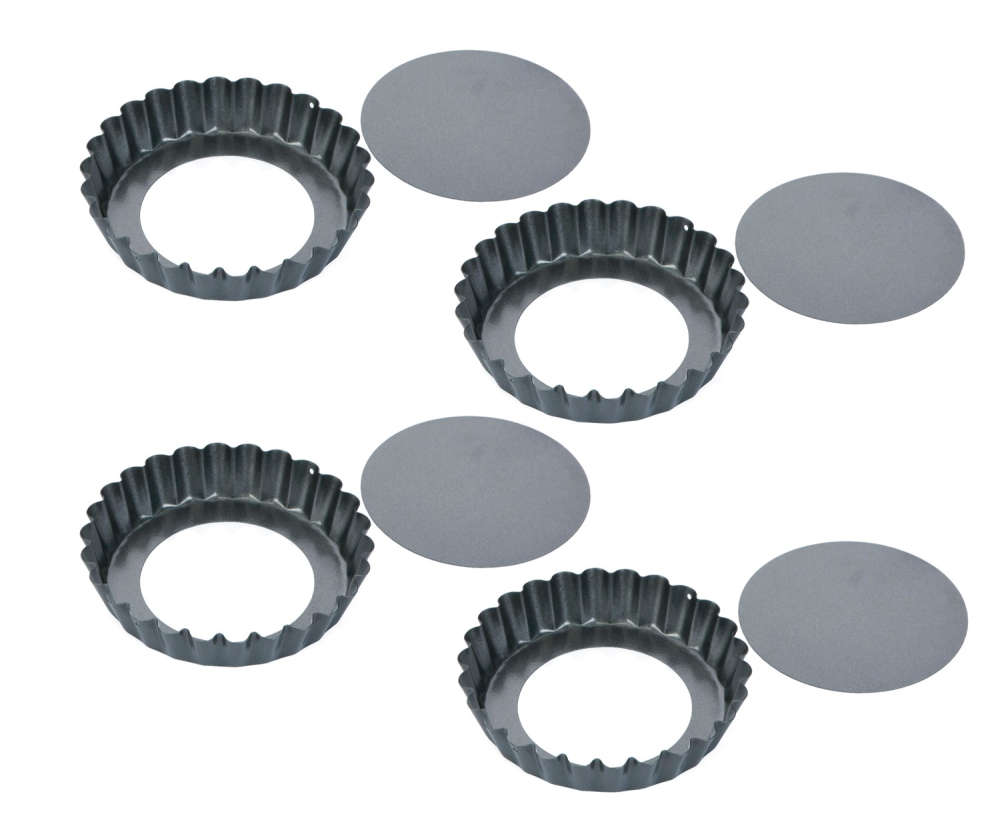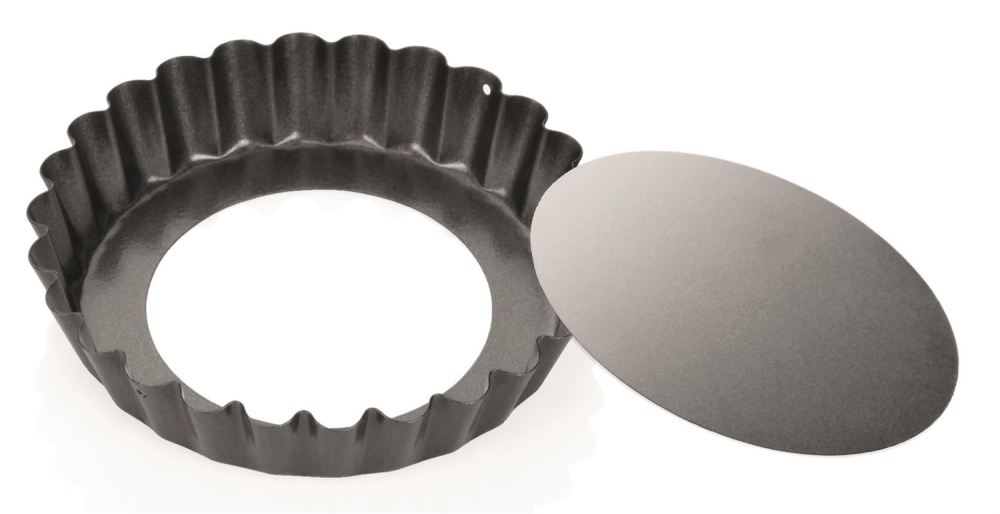 Tærteform med løs bund og non-stick belægning der gør det let at få tærterne ud af bunden.