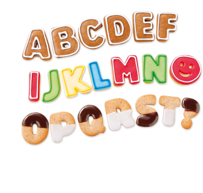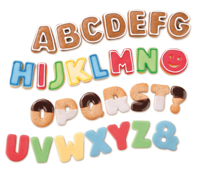 Udstikker med hele alfabetets bogstaver er sjove til at lave navne, beskeder på fødselsdagskagen i marcipan. Kan selvfølgelig også bruges på kager, cookies og cupcakes. Derudover kan du lave småkager der kan dekoreres så det bliver flotte og endnu mere lækre at sætte tænderne i :-)