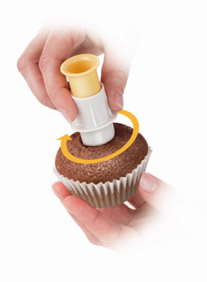 Denne muffin udstikker fra Tescoma er fantastisk hvis du vil fremstille dine egne fyldte muffins. Brug udstikkeren til at tage kernen ud af den færdigbagte muffin og fyld den med din favorit fyld. Tåler opvaskemaskine. 3 års garanti