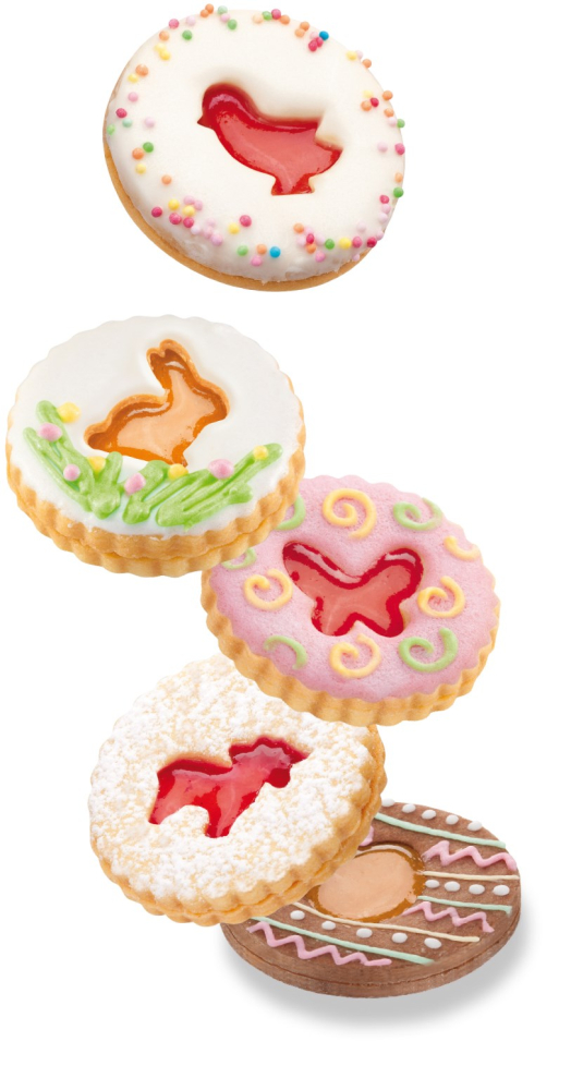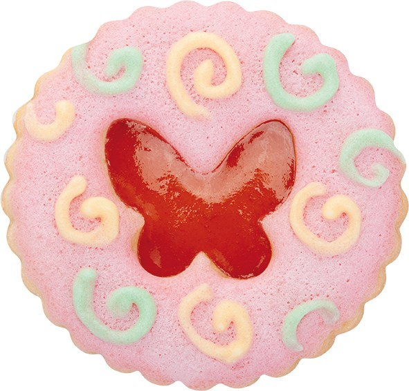 Når småkagerne er bagt, kan man efterfølgende lægge 2 småkager sammen med en smule marmelade eller syltetøj, og motivet på den øverste småkage bliver dermed mere tydelig.