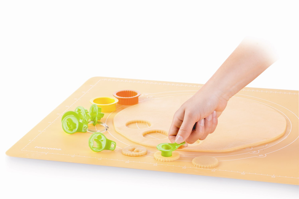 Smart udstikker sæt med 2 udstikker med enten glat eller bølget kant. Tryk småkager ud med en af de runde udstikkere. Tryk derefter et af de små søde motiver ud med de medfølgende udstikker motiver.