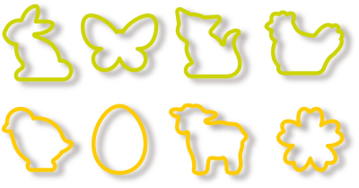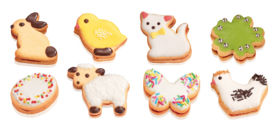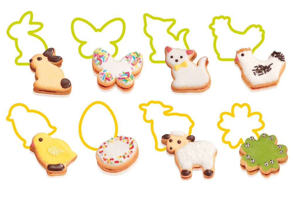 Smart udstikker sæt med 8 søde påskemotiver som kan bruges til både kagedej, småkager, marcipan og fondant. De er let at bruge og giver et rigtig flot resultat som børnene efterfølgende selv kan dekorere. Formene måler ca. 5 x 5 cm.