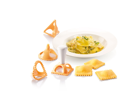 Raviolijern med 4 forme så du kan lave spændende, flotte og lækre ravioli. Kan også bruges til at lave lækre små butterdejs tapas. Det er let at skifte håndtag mellem de forskellige forme og produktet kan selvfølgelig maskinopvaskes