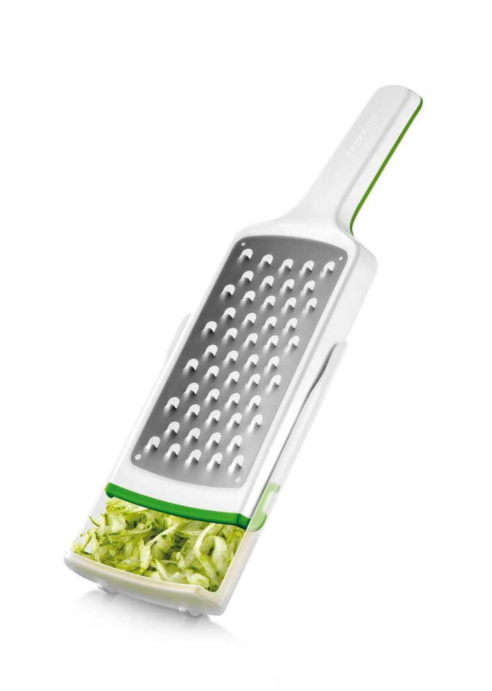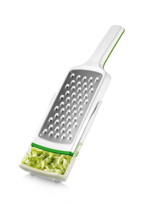 Dette rivejern med opsamler gør det let at rive agurker, kartofler, ost, æbler, gulerødder, selleri, courgetter, græskar, kålrabi, kål, kogte æg osv. Beskyttelsesbeskyttelsen fungerer også som et reservoir for de revne ingredienser. De ekstra skarpe, modstandsdygtige klinger er af rustfrit stål af høj kvalitet.