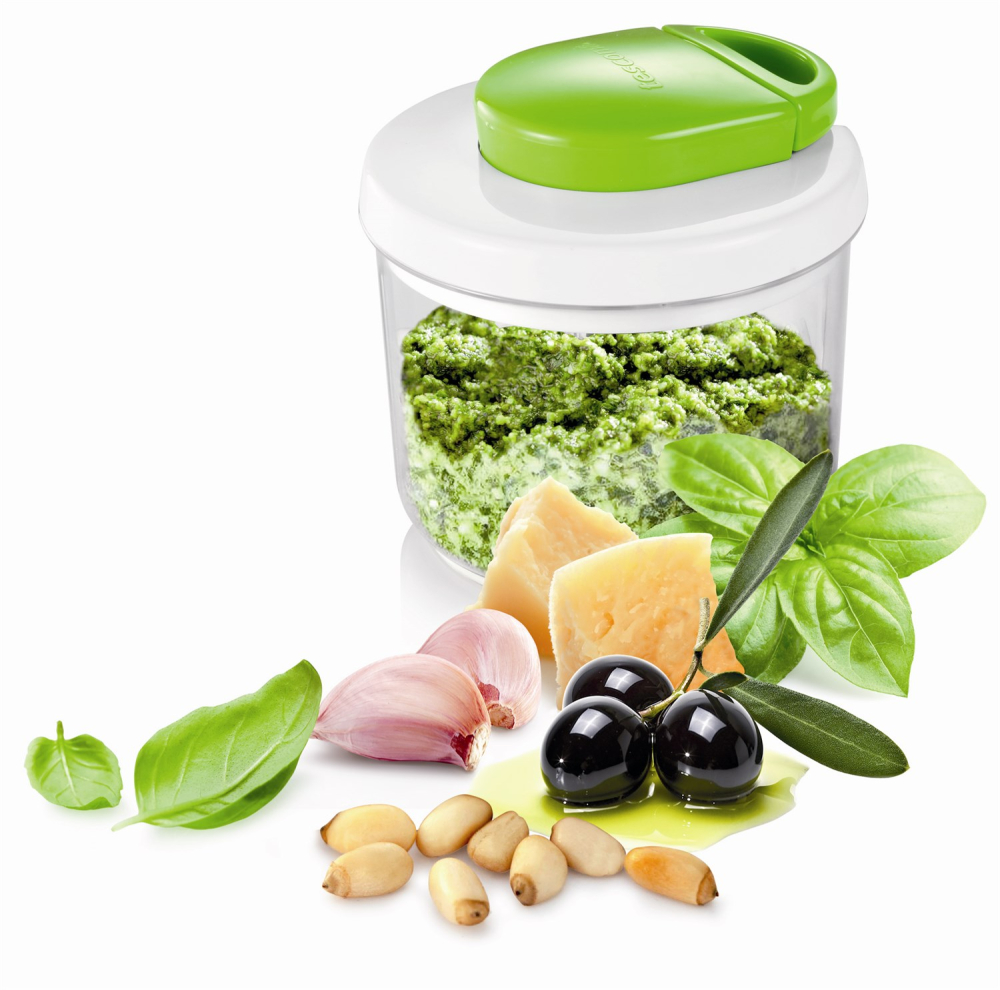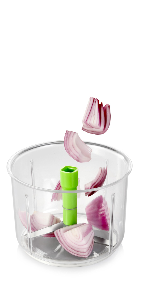 Minihakkeren fra Tescoma er monteret med 3 knive i rustfrit stål og kan bruges til et utal af opgaver i køkkenet. Minihakkeren hakker, purere eller blender grøntsager, frugt og køb, ved blot at trække i håndtaget. Du bestemmer selv hvor grovt eller fint du ønsker indholdet, og kan nemt se processen i den gennemsigtige beholder. Kan også bruges til at fremstille pesto, salsa og. lignende. Minihakkeren er monteret med skridsikker bund, så den står godt fast mens du bruger den og skålnemt og hurtigt maden til den ønskede konsistens du ønsker.