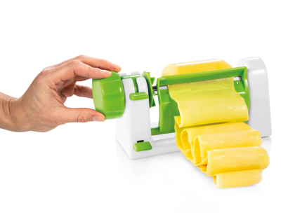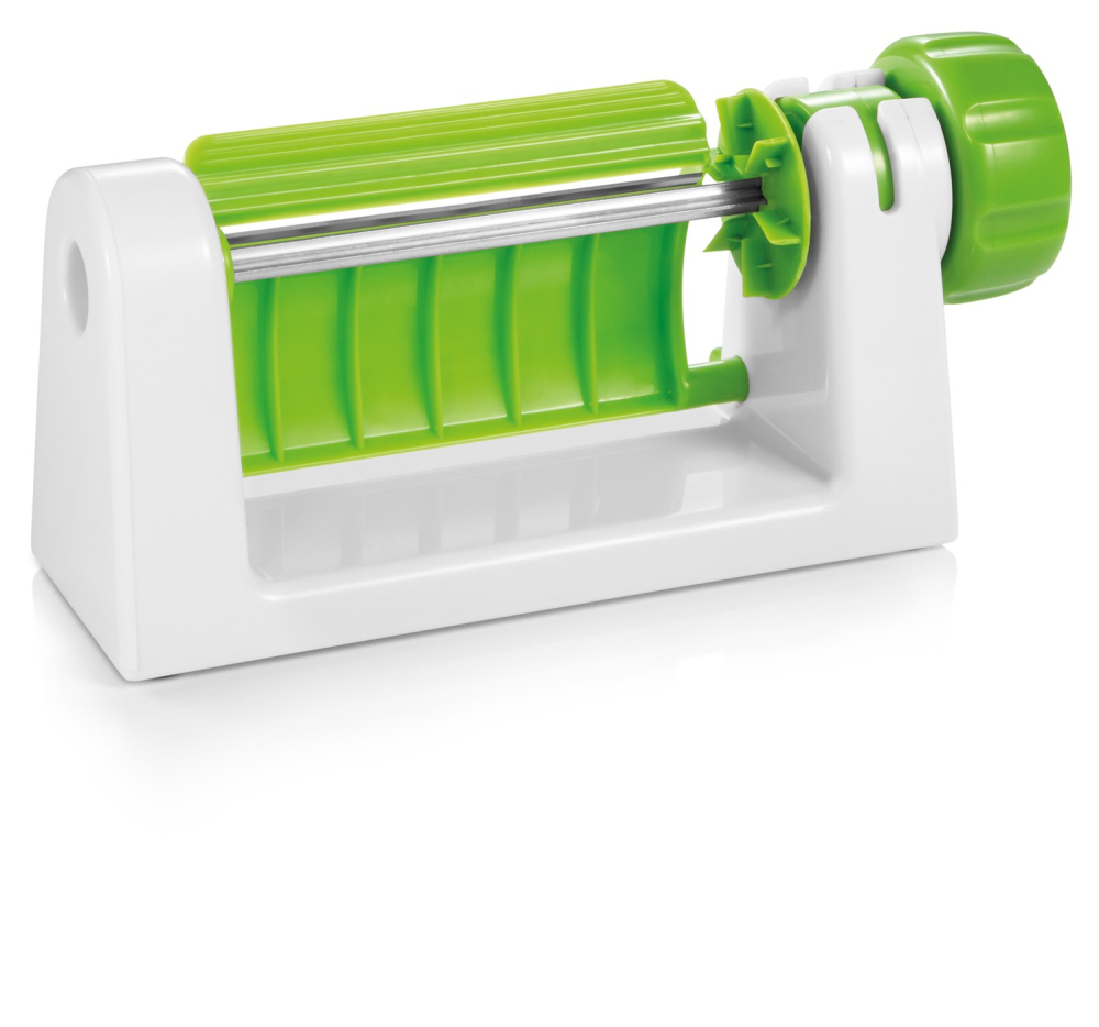 Grøntsags-sliceren er fremstillet i kraftigt BPA frit plastic og er udstyret med en meget skarp og kraftig kniv i rustfrit stål