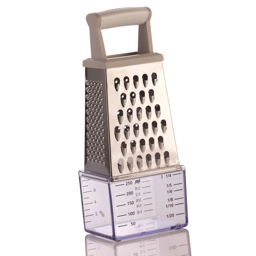 Klassisk rivejern med 4 forskellige rivejern og med opsamler som samler det du har revet, så intet går til spilde, og rengøring gøres let efterfølgende.