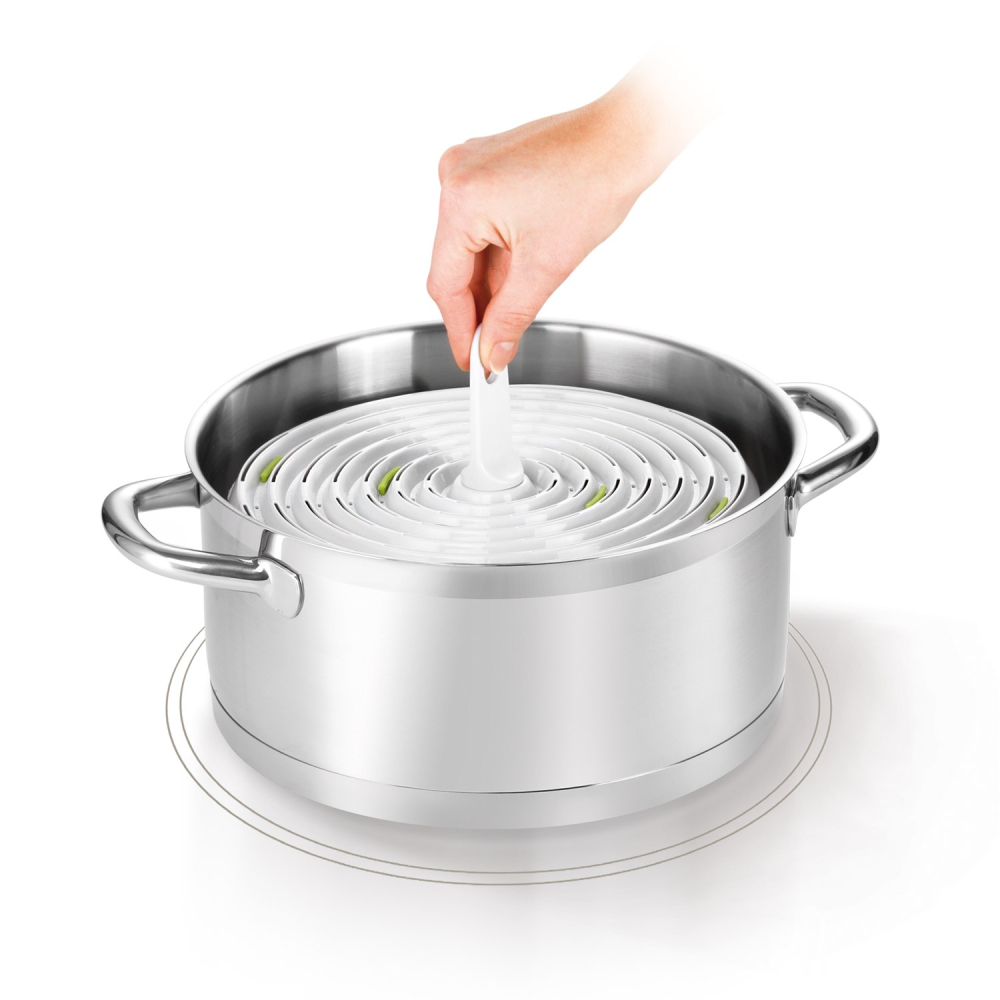 Rigtig praktisk indsats som kan bruges til henkogning sammen med en normal gryde eller kasserolle med en diameter på 24 cm.