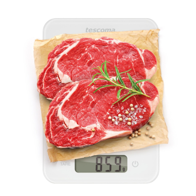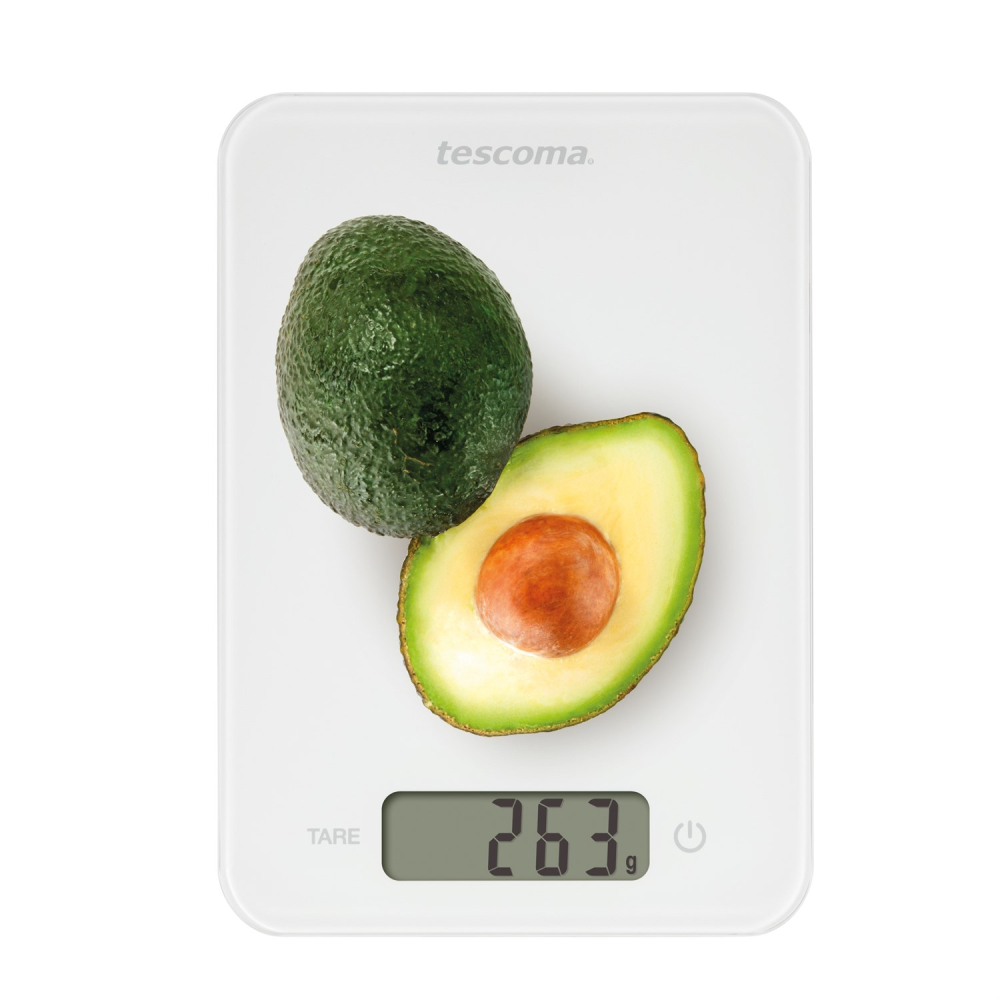 Elektronisk køkkenvægt. Stort LCD display. Vejer med 1,0 gram interval. Kan veje op til 5 kg. Nulstilling mellem vejningerne, så flere ingredienser kan vejes i samme skål. Måler 23 x 16 x 1,0 cm. Hygiejnisk glasplade på toppen. Leveres med et 3V lithium batteri.