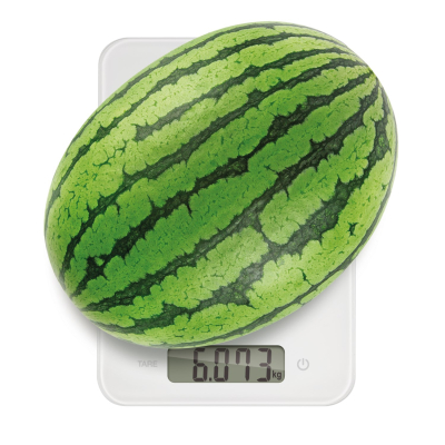 Elektronisk køkkenvægt. Stort LCD display. Vejer med 1,0 gram interval. Kan veje op til 15 kg. Nulstilling mellem vejningerne, så flere ingredienser kan vejes i samme skål. Måler 27 x 19 x 1,5 cm. Væger op til 500 g, med 0,1 g trin. Hygiejnisk glasplade på toppen. Leveres med et 3V lithium batteri.