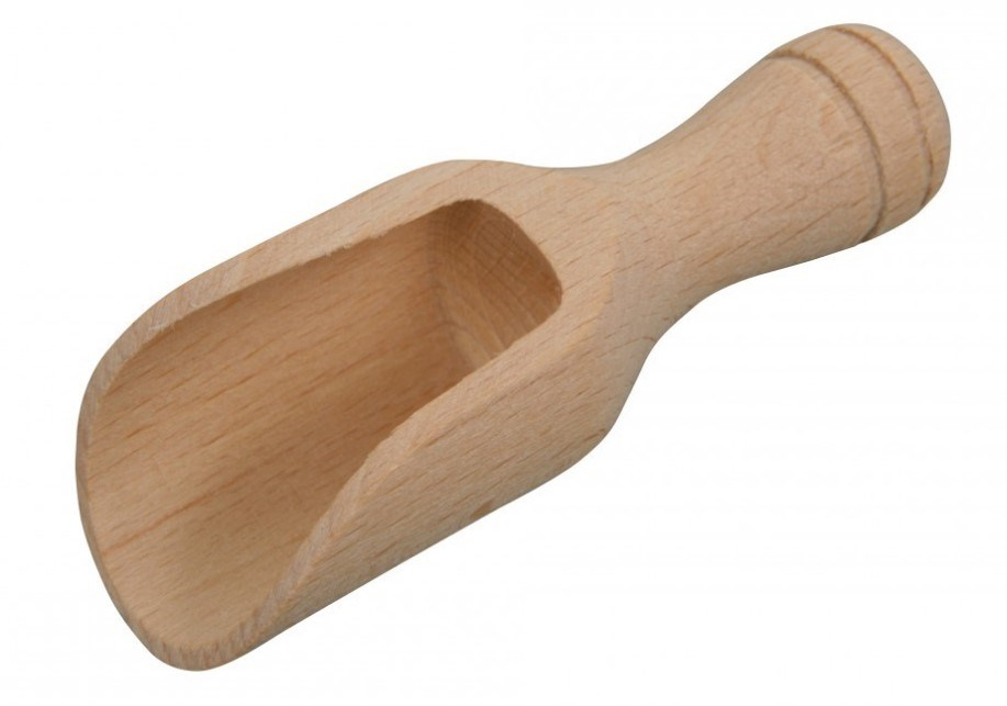 Træske / Træskovl til brug i bøtten med krydderier, salt, sukker og lignende. Flot forarbejdet og lækker finish i europæisk bøgetræ.