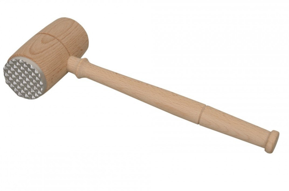 Kødhammer i europæisk bøgetræ med metal på den ene side af hovedet og træ på den anden side af hovedet. Fordelen er at man selv kan bestemme hvor kraftigt man slår afhængigt af hvilken side man bruger. Flot forarbejdet og lækker finish i europæisk bøgetræ. Hammeren er 30 cm. lang.