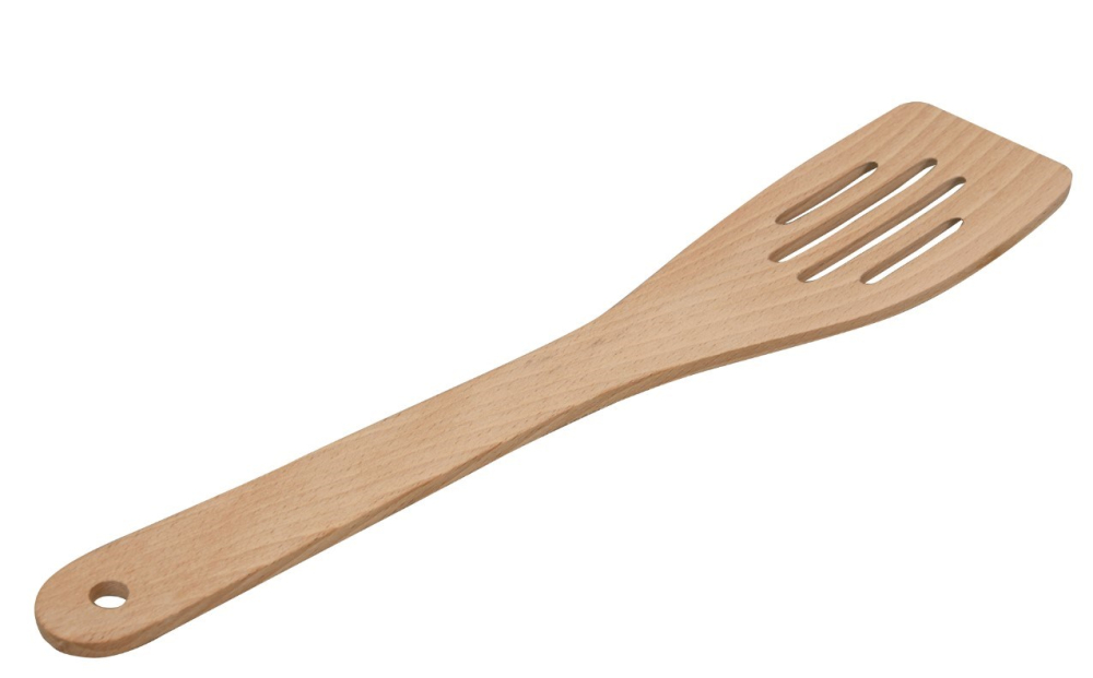 Buet træ palet med riller fremstillet i europæisk bøgetræ. 29 cm lang. Med hul i skaft til ophæng