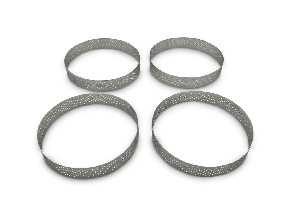 Pakken indeholder 4 ringe som er 10 cm i diameter og 2 cm høje, og fremstillet i rustfrit stål af høj kvalitet.