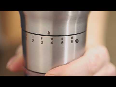 Moderne kaffemølle i rustfrit stål med fremragende keramisk kværn, hvor det er nemt at indstille hvor fint kaffen skal males. Indeholder måleenhed så du kun maler den mængde kaffe der nøjagtig skal bruges hver gang. Du får dermed altid friskmalet kaffe og ingen spild.