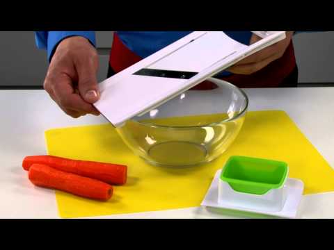 Med dette smarte mandolinjern fra Tescoma, kan du snitte dine grøntsager i den tykkelse du ønsker. Skæret på mandolinjernet kan indstilles til 3 tykkelser: 1 mm, 2 mm eller 3 mm. Derudover er der på undersiden smarte udskæringer som gør at mandolinjernet ligger sikkert, hvis du bruger en skål som opsamler, mens du snitter. Dette kan du se på videoen nedenfor.
