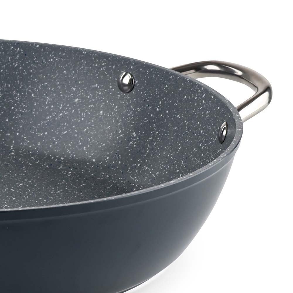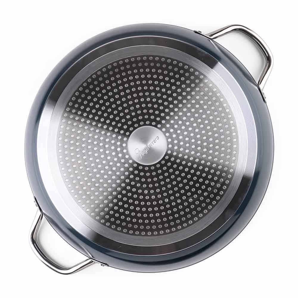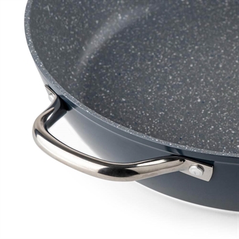 Panden er fremstillet i smedet aluminium af høj kvalitet, der sikrer maksimal og jævn varmeledningsevne. Den kraftige 3 mm bund fordeler varmen perfekt og giver optimale stege- og sauteringresultater. Den holdbare non-stick belægning gør panden ideel til sund madlavning uden brug af fedtstof og gør samtidig rengøringen enkel.
