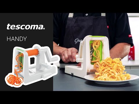 Du kan nu lave nye lækre retter og ny pynt på dine klassikere med denne nye spiraliser fra Tescoma. Det er hurtigt at få rå grønsager til salaten, eller til stir fry. Miks f.eks. forskellige farver som rødbede og squash for at få et visuelt flot resultat . Spiralizeren har kraftig sugekop i bunden, så den står fast og stabilt på køkkenbordet mens du arbejder, og du får 3 udskiftelige knive, der giver forskellige strimler. Sæt grøntsagen fast i spiralizeren og drej på håndtaget, så har du hurtigt lækre strimler. Knive opbevares sikkert i den medfølgende boks.