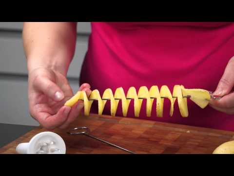 Det er let at lave tynde dekorative og lækre kartoffel spiraler med denne smarte spiralkniv fra Tescoma. Kartoflerne kan efterfølgende frituresteges i olie, men man kan også pensle kartoflerne med olie og drysse dem med salt, og færdiggøre dem i ovnen. Spiralkniven kan også benyttes til f.eks større gulerødder og kinaradisser. Tåler opvaskemaskine.